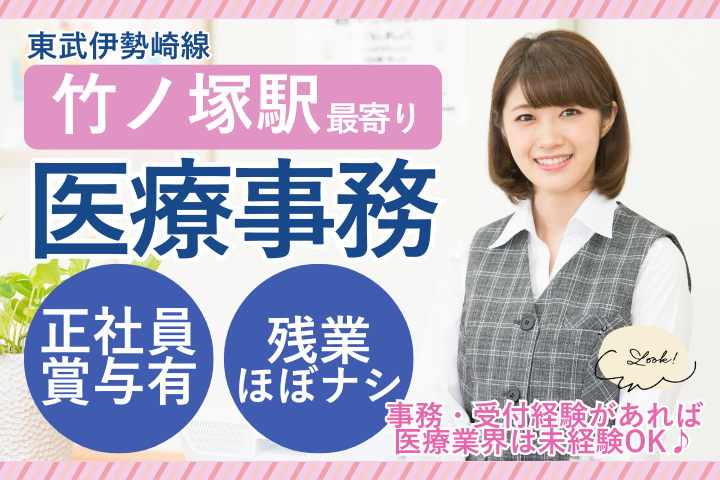 竹ノ塚駅徒歩12分*未経験OK!正社員・賞与ありの医療事務募集