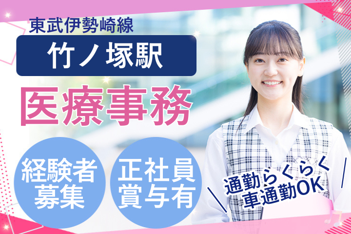 【竹ノ塚駅】医療事務経験者歓迎/正社員・車通勤OK/日祝休み×賞与4.5ヶ月分で安定勤務!