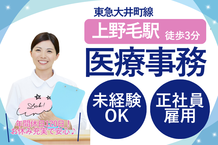 ◇人気の医療事務◇上野毛駅3分・未経験歓迎!120日休み&ボーナス年2回で長く安定♪