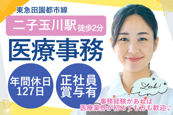 【二子玉川駅2分】未経験OK!安定の正社員医療事務*女性活躍中*賞与3.5ヶ月&年休127日