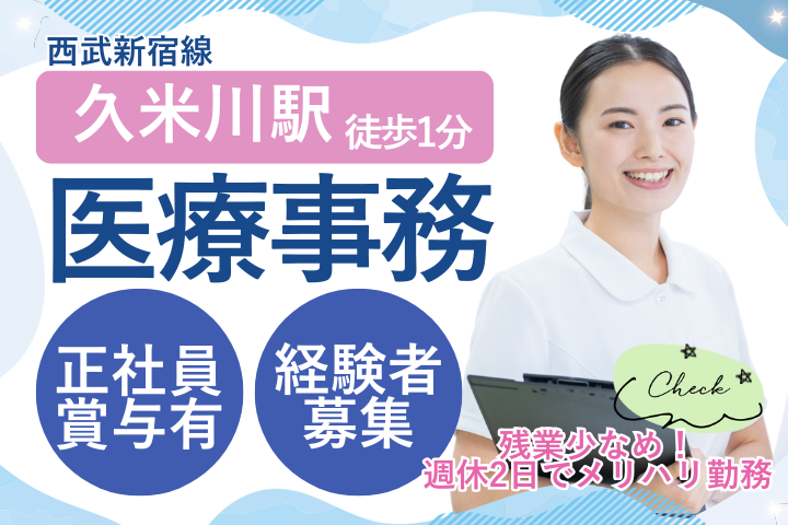 【久米川駅1分】レセプト経験者歓迎★賞与あり・週休2日制でメリハリ勤務/正社員募集!