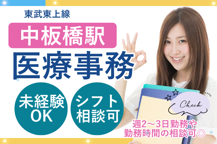 週2~3日勤務も相談OK◎中板橋駅チカ・未経験歓迎*クリニックでの医療事務スタッフ募集!