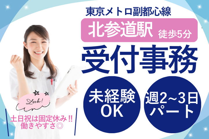 北参道駅徒歩5分◎未経験から始める受付事務*週2~3日・土日祝休みで家庭と両立しやすい♪