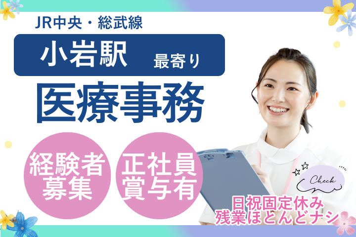 江戸川区・南小岩◆経験者募集!クリニックで医療事務◆賞与3.9ヶ月/日祝休み&残業少なめ