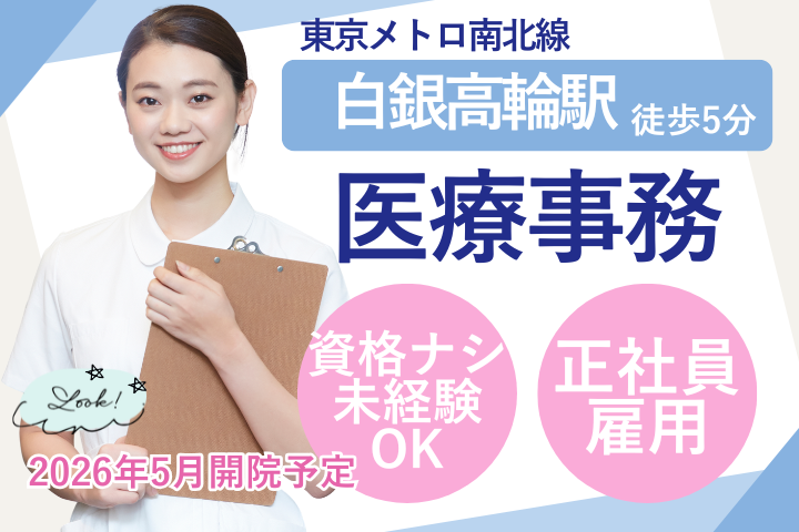 【白金高輪駅チカ】未経験OK◎新規開院クリニックの医療事務*週休2日制&賞与あり*研修充実で安心スタート♪
