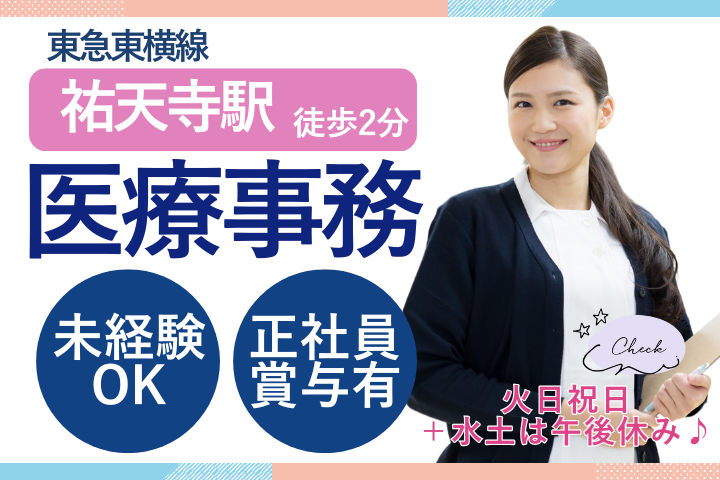 【祐天寺駅2分】未経験・資格不問◎正社員の医療事務*年間休日120日以上*賞与あり