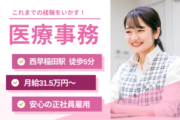 【西早稲田駅徒歩5分】経験をいかす*医療事務/高給与&正社員★駅チカで通勤便利!