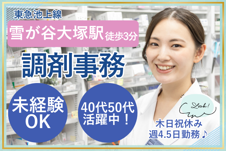【南雪谷駅徒歩3分】未経験OK!調剤薬局の受付事務パート◆週4.5日/木日祝休み/交通費全額支給