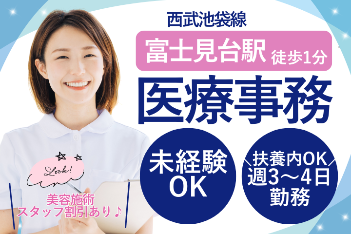 【富士見台駅30秒】未経験歓迎!扶養内OK★残業ほぼなし/医療事務パート募集◎休暇もしっかり♪