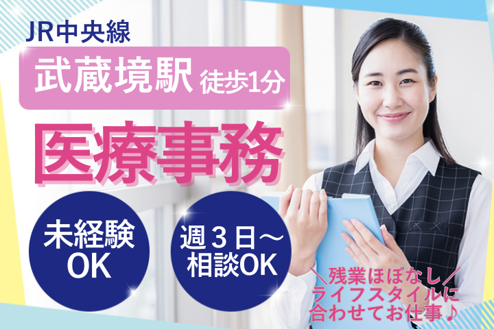 \武蔵境駅すぐ!駅チカクリニックで医療事務スタッフ募集/