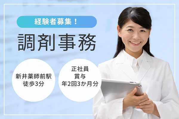 【新井薬師前駅3分】資格不問&ブランクOK/住宅手当・賞与3ヶ月!50代活躍中の調剤事務★木日祝休み◎