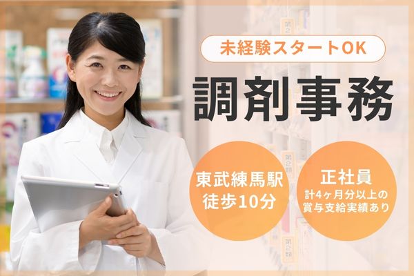 【東武練馬駅から徒歩10分】未経験OK*女性活躍中!正社員調剤事務/賞与4ヶ月分&年休114日◎