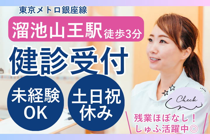【溜池山王駅徒歩3分】未経験歓迎!人気の総合病院で健診受付/土日祝休み&残業ほぼなし♪