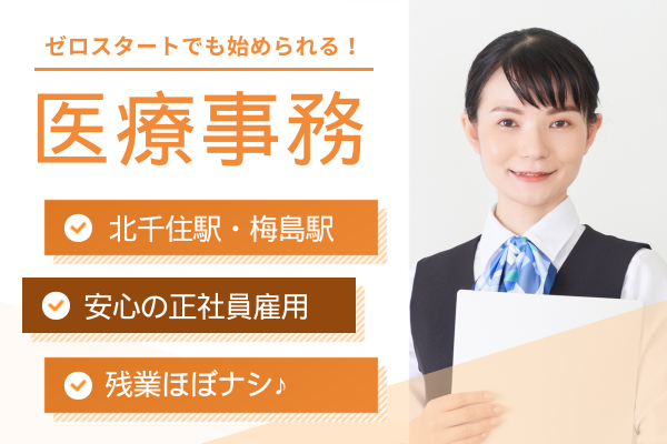 【梅島・西新井駅徒歩15分】未経験・ブランクOK*賞与あり!病院受付の正社員事務◇年間休日115日で私生活も◎