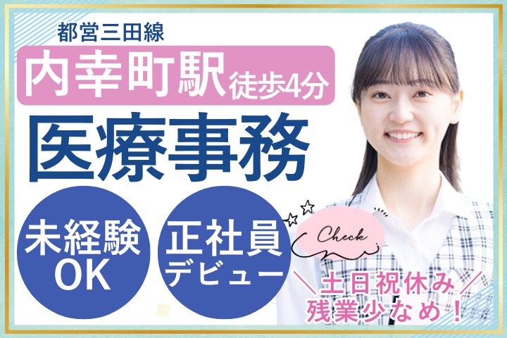 【内幸町駅徒歩4分】未経験OKの医療事務*土日祝休みでプライベート充実