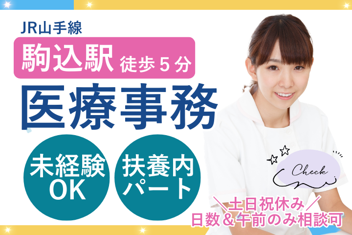 【駒込駅から徒歩5分】未経験OK!週2日~&午前のみ勤務も可*家庭と両立しやすい医療事務パート