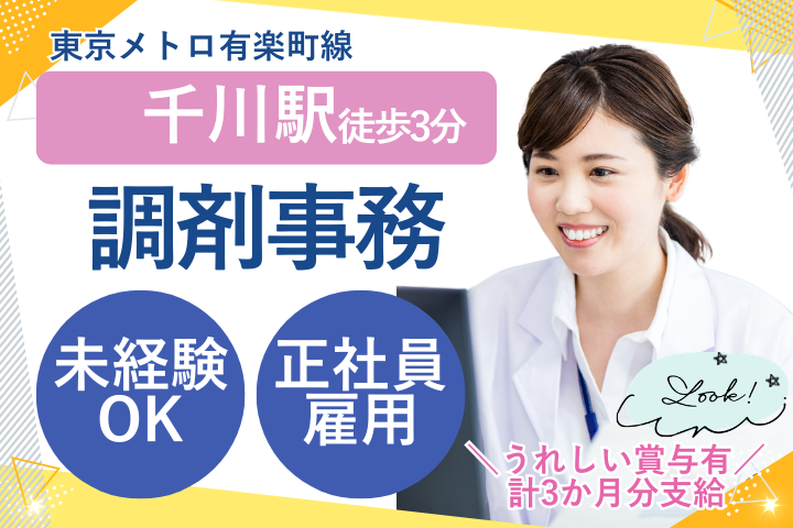 【千川駅徒歩3分】未経験OK!賞与3ヶ月分*調剤薬局の事務スタッフ募集