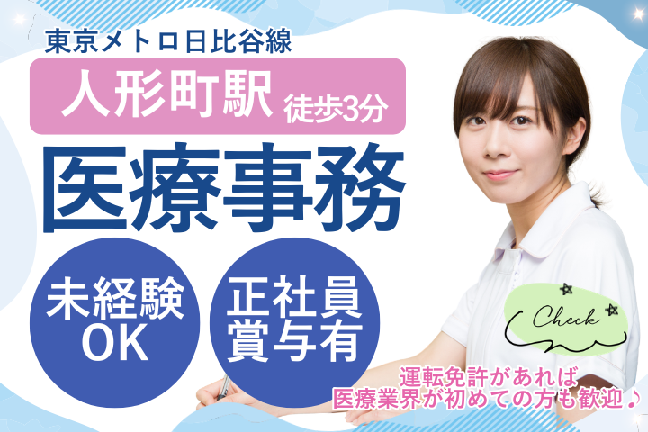 【人形町駅徒歩3分】未経験歓迎!正社員の医療事務◆土日祝休み&年休122日でプライベート充実◎