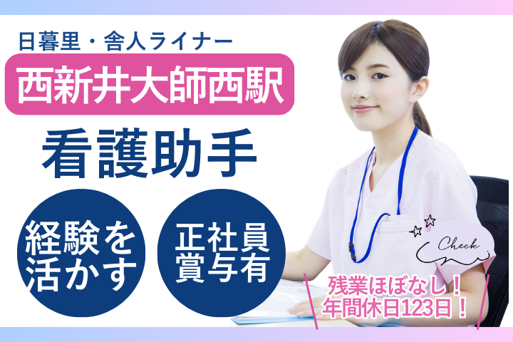 【西新井大師西駅/博慈会記念総合病院】経験者歓迎☆病棟看護助手/年間休日123日&賞与3ヶ月!ワークライフバランス充実♪