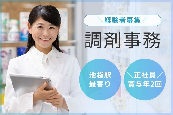 【池袋駅徒歩10分】調剤事務経験者歓迎*週2回の午前のみシフトあり/残業少なめ&賞与年2回