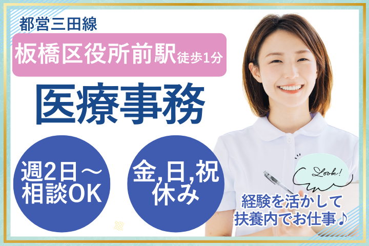 【板橋区役所前駅1分】週2日~OK*40・50代活躍中の医療事務パート★時給1500円~・扶養内&家庭との両立も◎