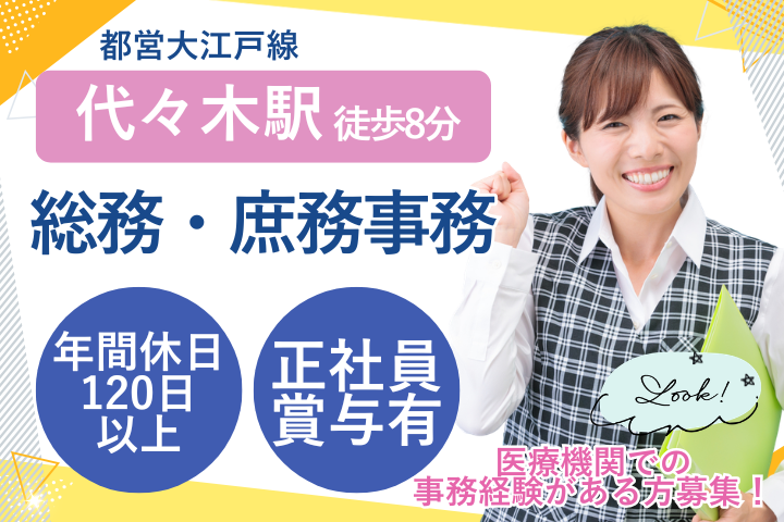 参宮橋駅・代々木駅から徒歩圏内*事務経験を活かせる総務事務/賞与・年休120日も充実