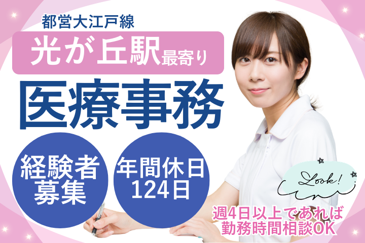 【光が丘駅徒歩15分】経験者歓迎!新しくてきれいな病院で医療事務*年間休日124日&働きやすさ◎
