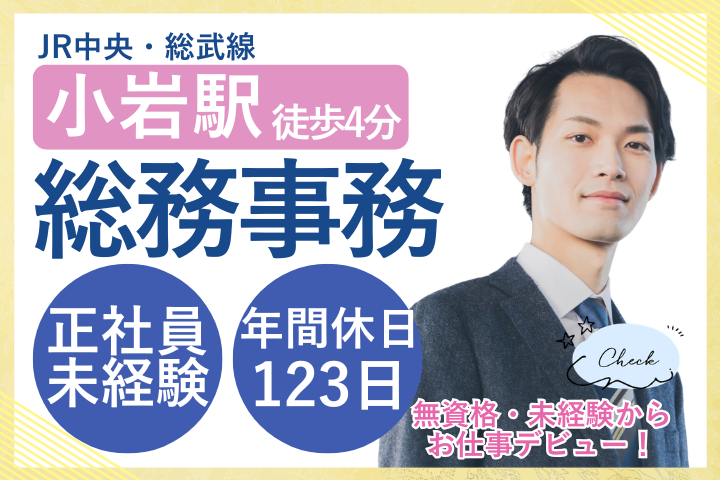 【小岩駅徒歩4分】未経験から始める病院総務事務◆賞与3.3ヶ月&年間休日123日で働きやすさ抜群