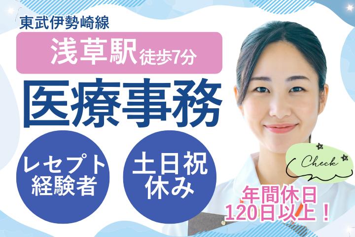 【田原町駅5分・浅草駅7分】レセプト経験者の募集/土日祝休み・残業ほぼなし・時給1600円・40~50代活躍中!