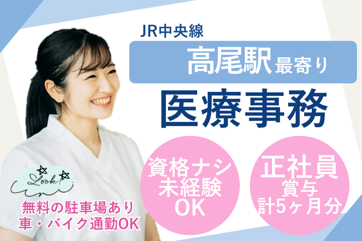【高尾駅送迎バスあり】未経験から始められる病棟クラーク*賞与5ヶ月分*年間休日114日!