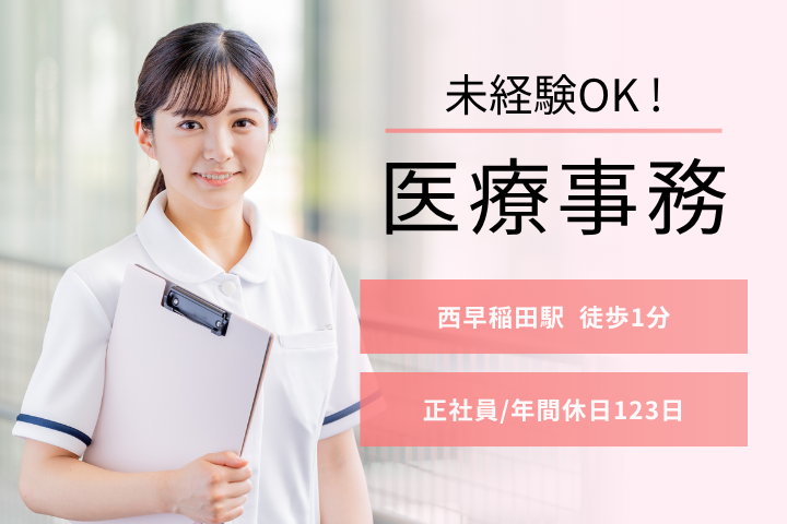 【西早稲田駅1分/高田馬場駅8分】未経験から始める医療事務◆年間休日123日&賞与あり♪