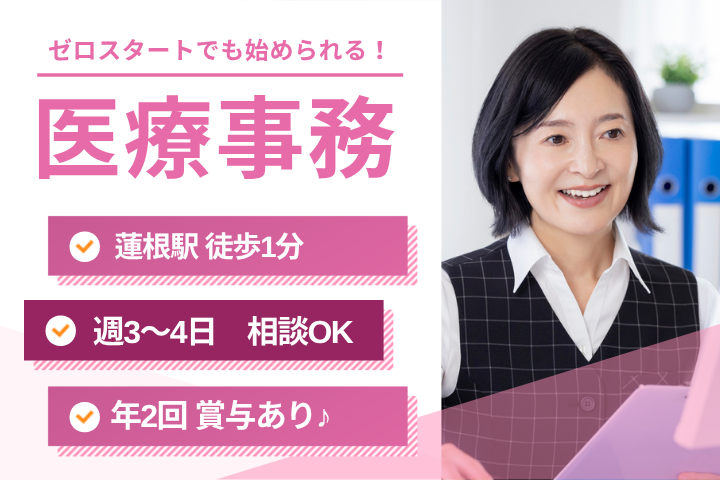 【蓮根駅徒歩1分】未経験・ブランクOK!週3日~賞与ありの医療事務パート