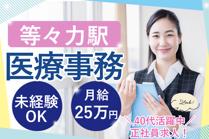 等々力駅徒歩2分◎未経験から始める医療事務★賞与有の正社員!週休2日制♪
