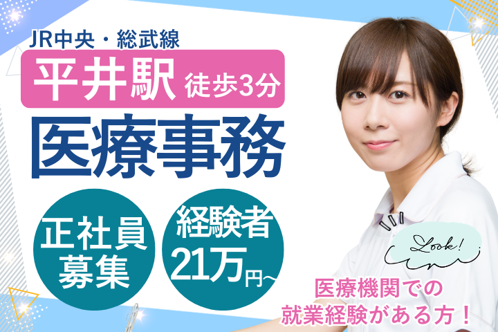 正社員×賞与・各種手当充実!経験活かして活躍◎平井駅3分/医療事務で安定勤務☆
