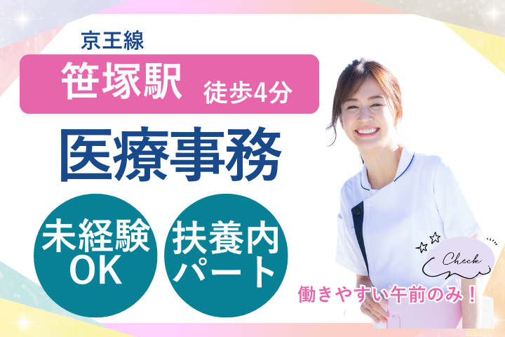 【笹塚駅徒歩4分】未経験・資格不問◎AMのみ×週3日★扶養内パート*医療事務スタッフ募集