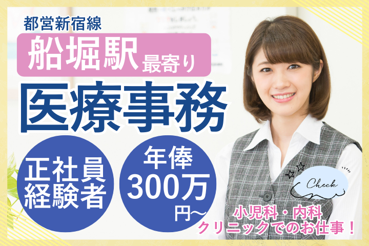 【船堀・新小岩】経験を活かせる!小児科クリニックで医療事務/年俸300万~・安定勤務の正社員