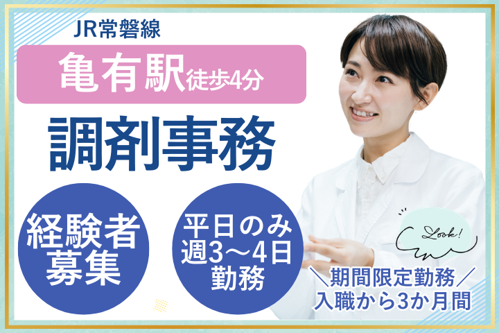 【亀有駅徒歩4分】経験者募集*週3日~&土日祝休み*3ヶ月の短期派遣求人!