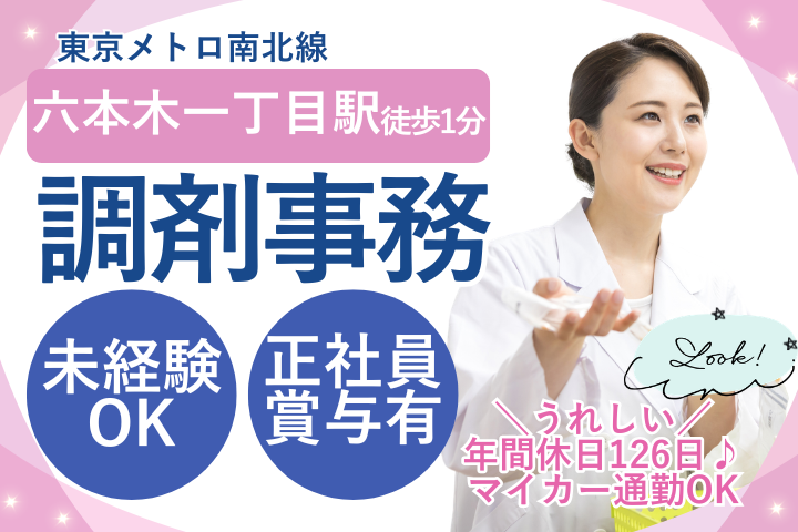 六本木一丁目駅直結*未経験歓迎◆週休2日・賞与あり◆調剤事務スタッフ募集