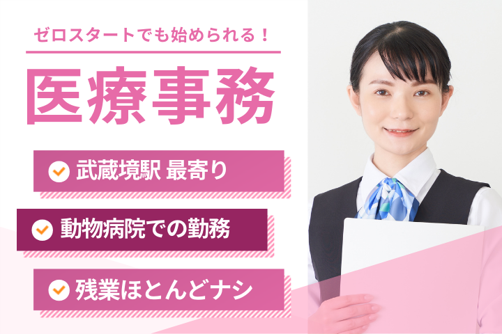 【武蔵境駅6分】未経験・ブランク歓迎♪大学付属動物病院で医療事務スタッフ募集!