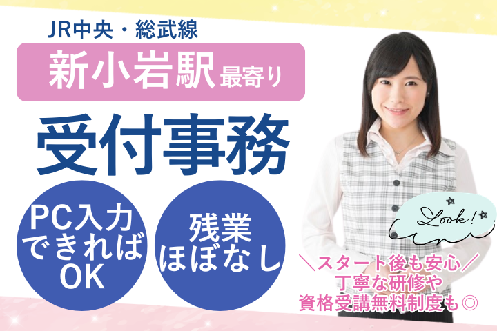 【新小岩駅徒歩12分】未経験から始める病院受付*日祝休み&残業ほぼなし!