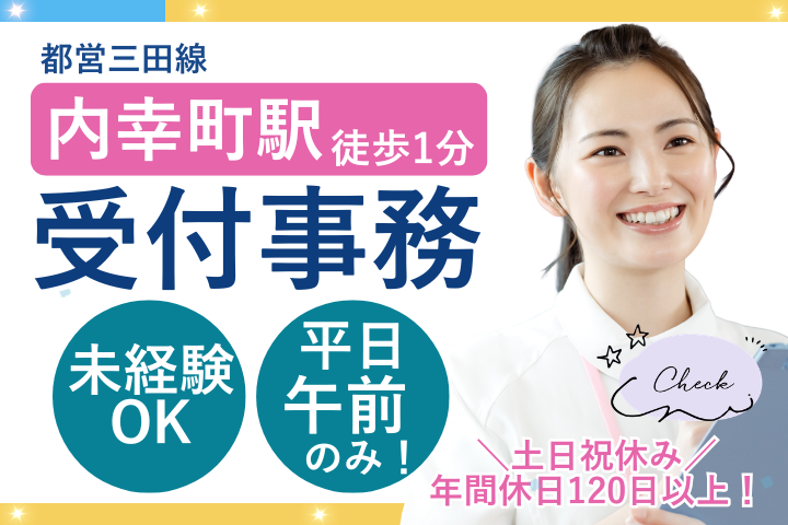 【内幸町・三田駅スグ】未経験OK!午前のみの受付事務◆土日祝休み&残業ほぼなし