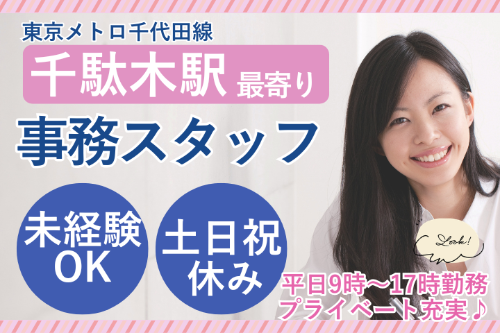 【千駄木駅徒歩7分】人気の9時-17時勤務★土日祝休み★職場環境も良好です★