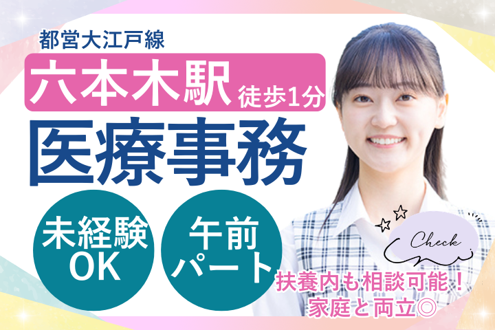 【六本木駅徒歩1分】未経験OK!週5日&年間休日120日以上◆レディースクリニックでの医療事務スタッフ募集