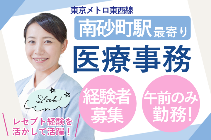 南砂町駅徒歩10分★レセプト経験者!整形外科クリニックで長期安定の医療事務*週4日~・年休120日