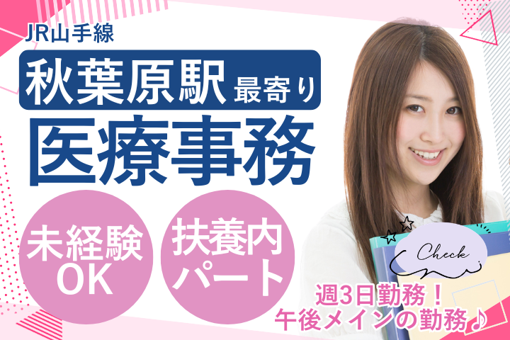 【週3日~OK】未経験から始めるクリニック受付・医療事務/秋葉原駅チカで扶養内・Wワークも歓迎!