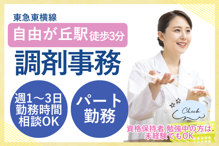 【自由が丘駅徒歩3分】未経験・ブランクOK|週1日~シフト相談可♪調剤事務パート募集