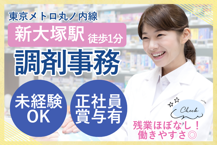 新大塚駅徒歩すぐ*未経験から始める調剤事務|賞与年2回×福利厚生充実