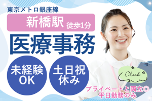 新橋駅徒歩1分*未経験OK*クリニック受付・事務♪土日祝休&残業ほぼなし◎
