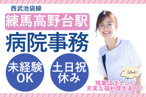 【練馬高野台駅3分】未経験OK!順天堂大学附属病院で病棟サポート事務◆残業ほぼナシ&土日祝休み