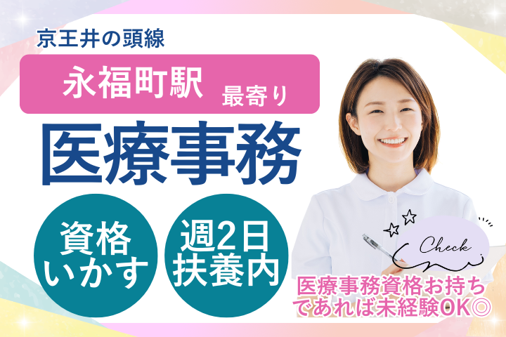 永福町駅徒歩7分*週2日・午前のみ*未経験OK!家庭と両立しやすい医療事務パート